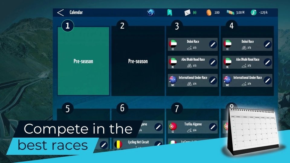 2、多样赛事体系:包含公路赛、山地赛、计时赛等不同类型赛事,每种赛事有独特赛道地形与规则,需针对性调整车手阵容与战术,考验管理灵活性。