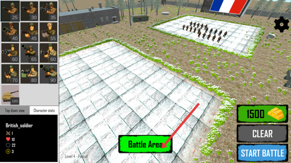 1、进入界面,点击左侧兵种如British soldier,拖至战斗区域来部署,需要一起搭配不同的兵种的数量。