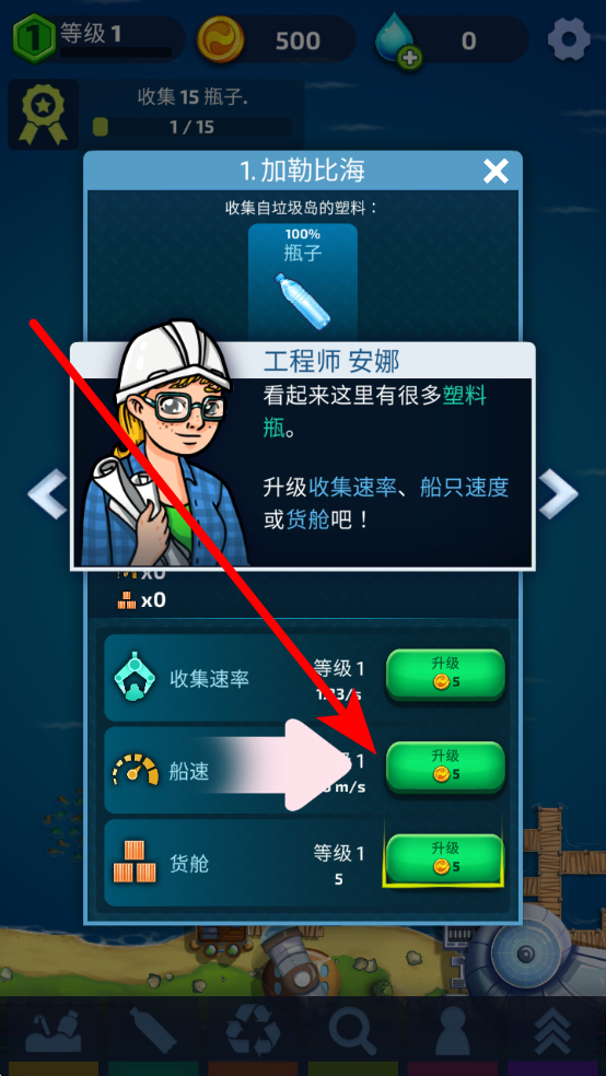 3、收集垃圾的过程中,关注收集速率、船只速度和货舱容量,通过升级这些方面,能提升垃圾收集和运输的效率,让海洋清洁工作开展,更快地改善海洋环境。