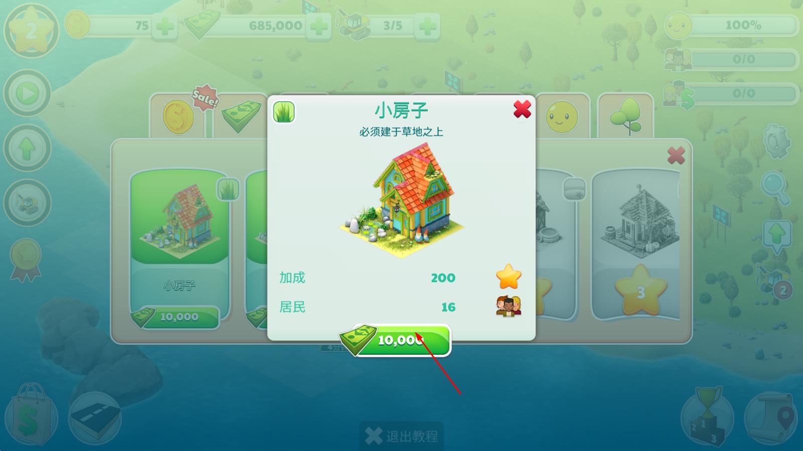 2、游戏进行中,通过合理布局建筑物获取金币,用收益解锁更多建筑类型,拓展城镇规模,同时改善设施提升居民生活水平。