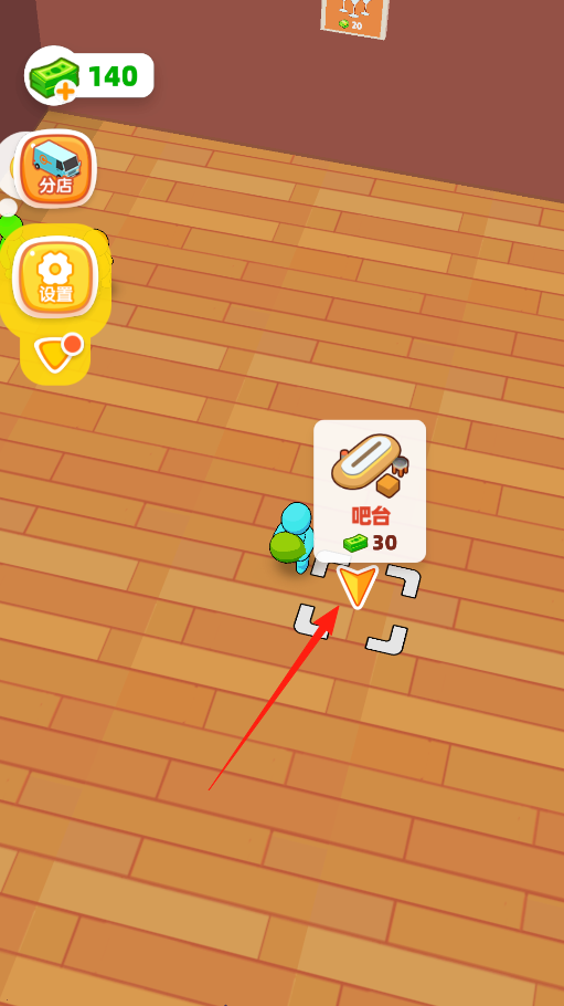 1、进入店铺界面,看到吧台图标和30金币的建造提示,点击建造吧台,这样店里就能多一个服务区域,顾客来了有地方点单,慢慢把小店规模搞大,让生意更像样。