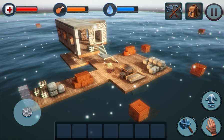 2、生存冒险开启:生存冒险从一开始就正式展开,玩家需迅速适应环境,学会收集资源、制作工具,逐步掌握在筏上生存的技巧。