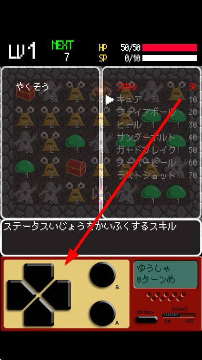 3、遇到技能选择界面时,依据箭头指引,用下方方向键选择想要的技能,学习该技能助力后续地牢战斗与探索。