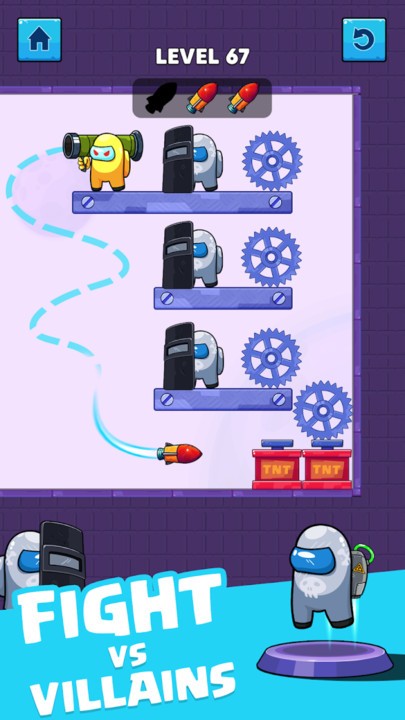 - 我们的火箭战争最新版带来趣味十足的弹道解谜体验。玩家需要精心计算火箭发射轨迹,巧妙利用场景中的反弹点与机关装置,准确命中目标。每个关卡都设计有独