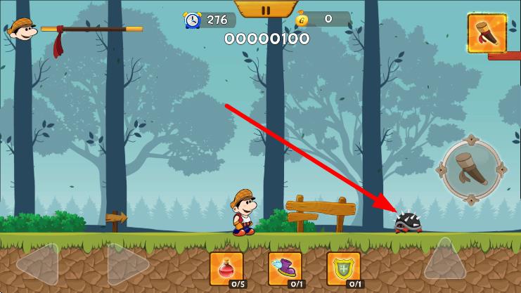 3、在森林场景,遇到箭头指向的黑色甲虫敌人,可通过移动、攻击来消灭它,获取金币或道具,推进关卡。