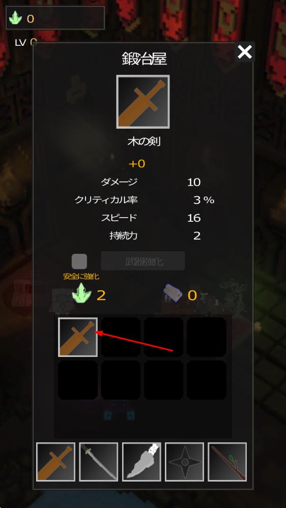 1、进入罢工地牢,先从5种武器中挑选适合自己的装备,搭配初始魔法技能,塑造专属角色,开启地牢探险的第一步。