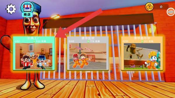 1、画面呈现3种场景,包含玩具工厂、唐华监狱、唐华嘉年华,每个场景的布局都不同,可根据提示进行操作。