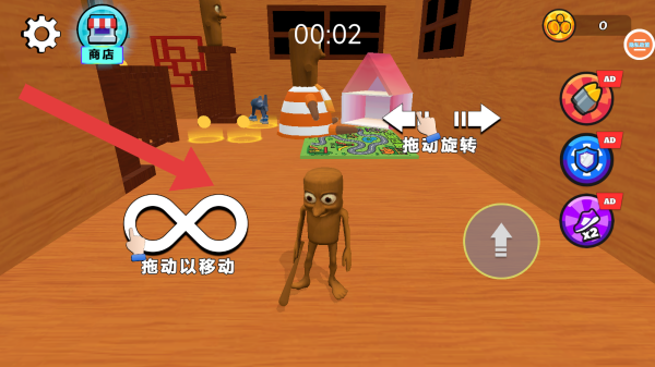 3、了解大致游戏玩法后可以开始移动人物,过程中遇到的金币可以通关跳跃进行拾取,其他形态属于皮肤。