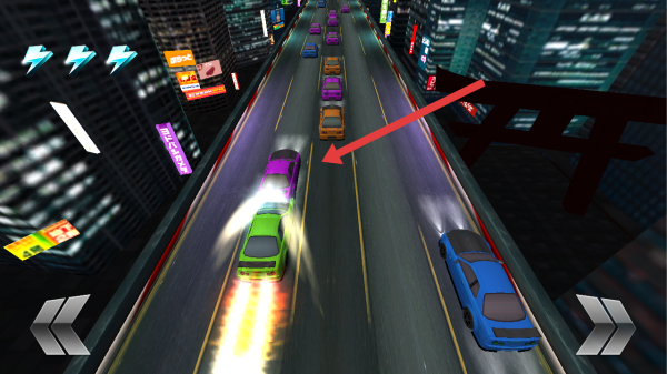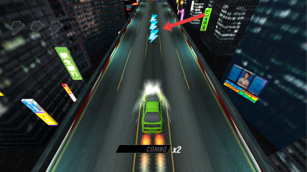 1、在驾驶赛车时,需要靠近并收集道路中央的蓝色闪电道具,借助获取车辆加速性能的增益。