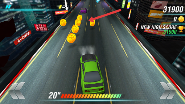 3、沿着金币分布的道路进行驾驶,优先收集道路中央金币,同时观察前方的路况,兼顾收益与安全。