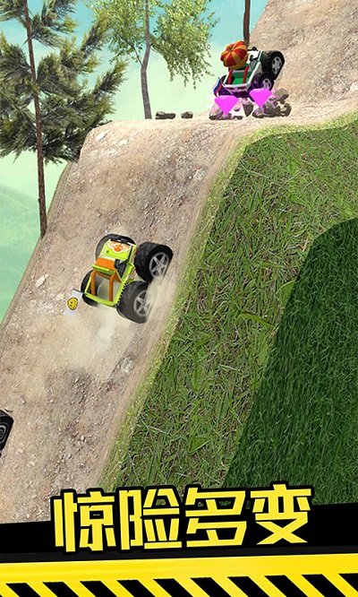 1、操作时机掌控关键:休闲有趣,通过掌握点按与松手的时机,控制好加速的力度,让越野车能尽可能又快又稳地通过各种障碍地形,考验玩家的操作技巧。