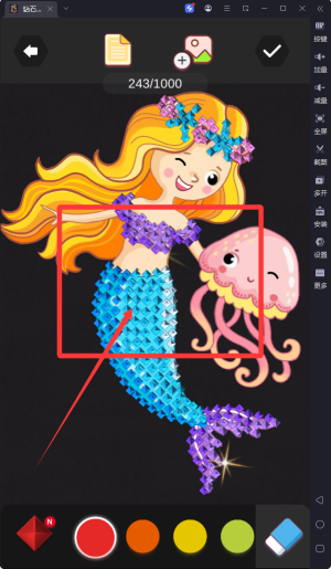 1、玩家通过识别画作中的数字编号区域,选择对应颜色的亮片进行填充,逐步完成精美的钻石画作创作。