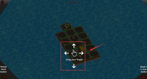 1、按住红框区域拖动手指,控制字母P移动方向。
