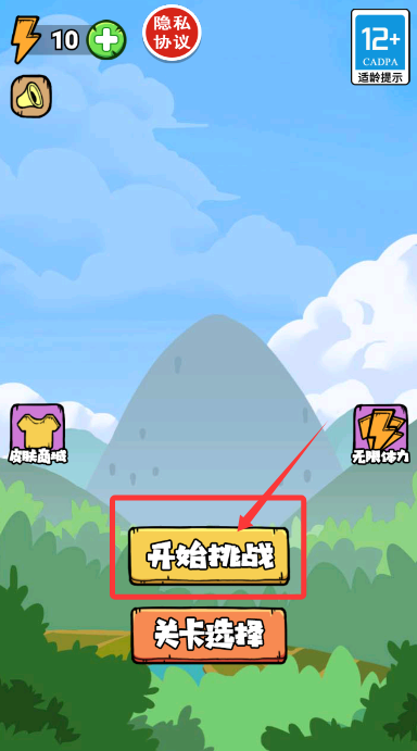 1、启动游戏后,点击"开始挑战"的按钮,即可进入关卡选择界面之中。
