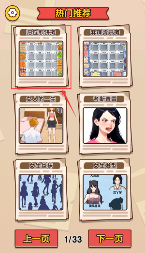 1、点击红框热门推荐,浏览各类经营模拟游戏选项。