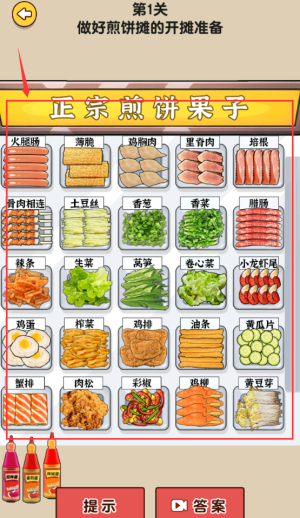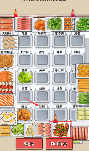 3、选择红框彩椒食材,完成煎饼配料准备工作。