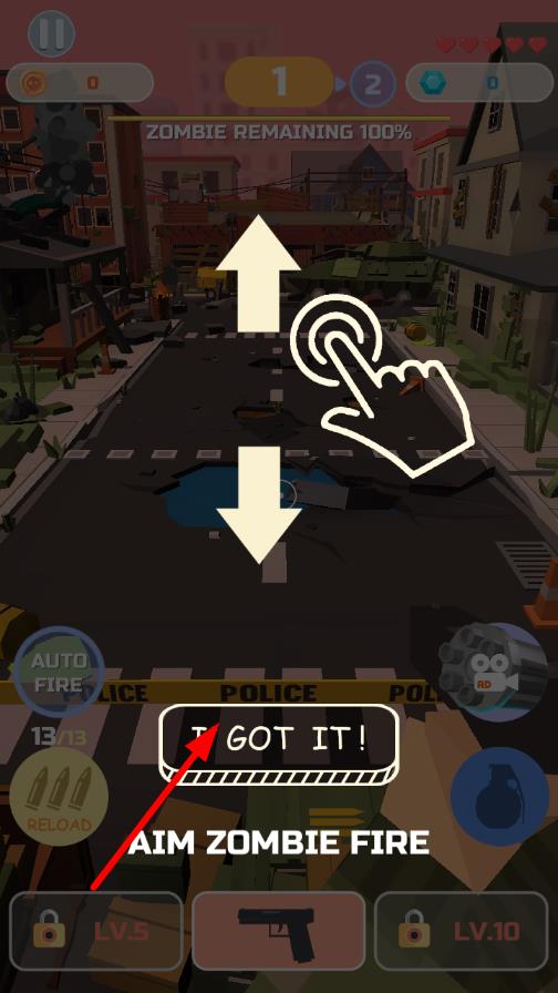 1、进入游戏后,在初始场景拾取地上的手枪或步枪,熟悉瞄准与射击操作,对准靠近的僵尸扣动扳机,完成首轮生存防御。