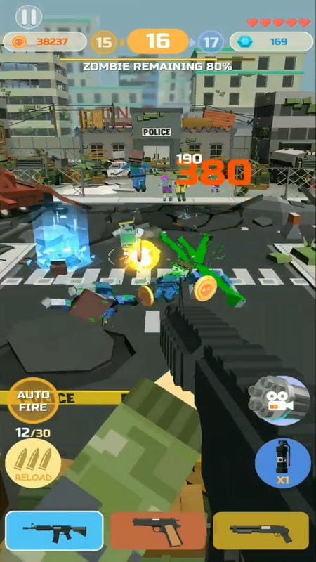 2、场景互动丰富:城市中的油桶可引爆造成范围伤害,汽车可撞击僵尸群,门窗可临时封堵,利用环境元素能有效提升生存概率,增强趣味性。