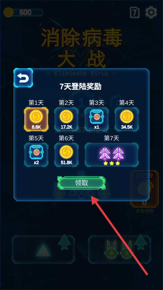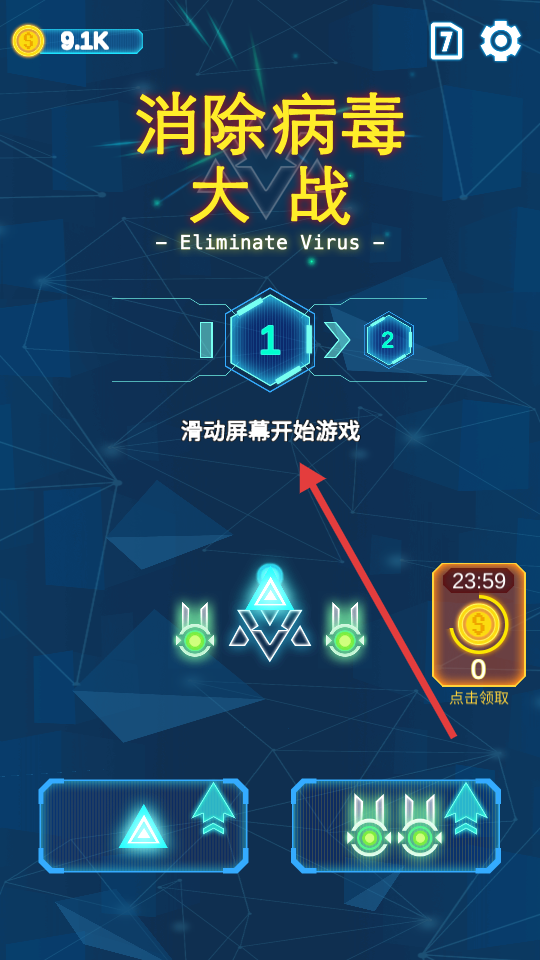 2、收集击败病毒掉落的金币,用于强化武器与解锁新技能。