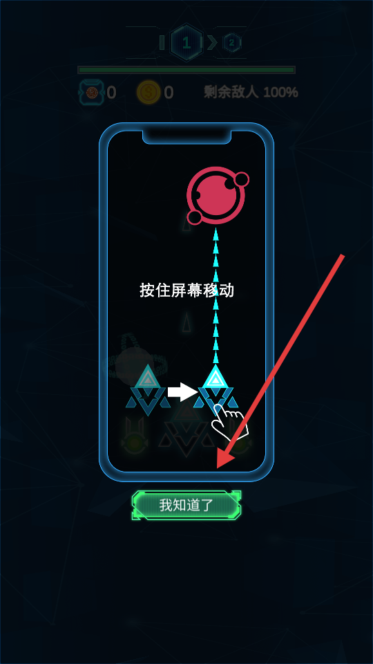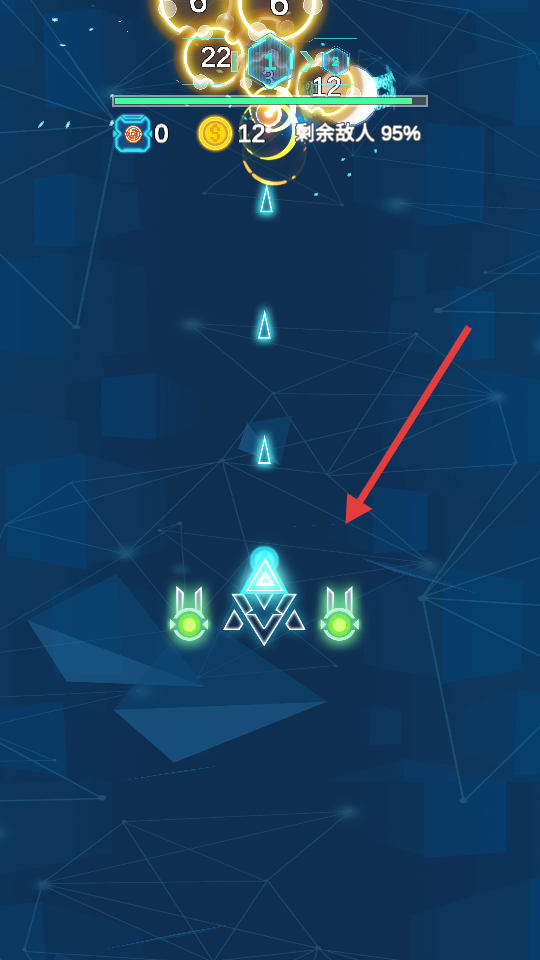 1、单指滑动屏幕控制战机移动,自动发射子弹攻击病毒群。