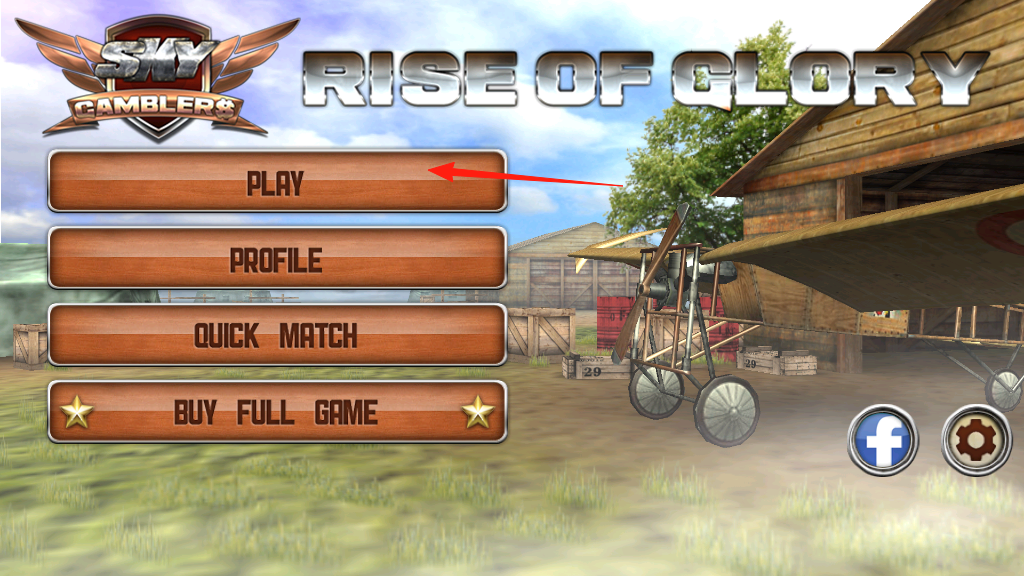 1、打开游戏看到PLAY按钮,点它进入游戏模式选择,这是开始空战冒险的第一步,选完能开飞机打敌人,体验当飞行员的感觉。
