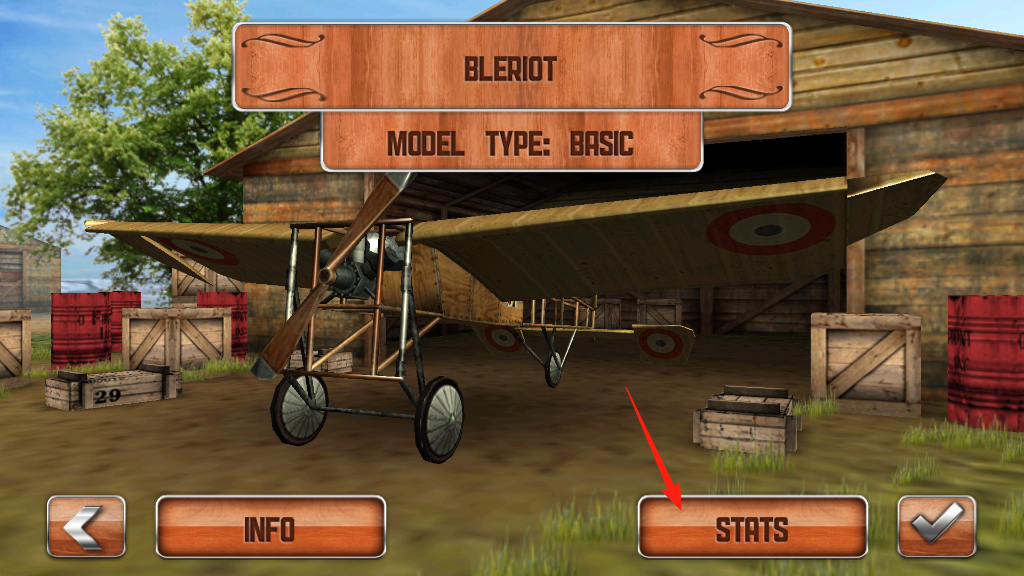 3、在飞机选择界面,点STATS看飞机数据,像速度火力这些,了解清楚后,选这架飞机去战斗,根据数据调整战术,让飞机发挥最大威力。