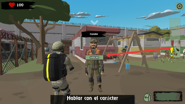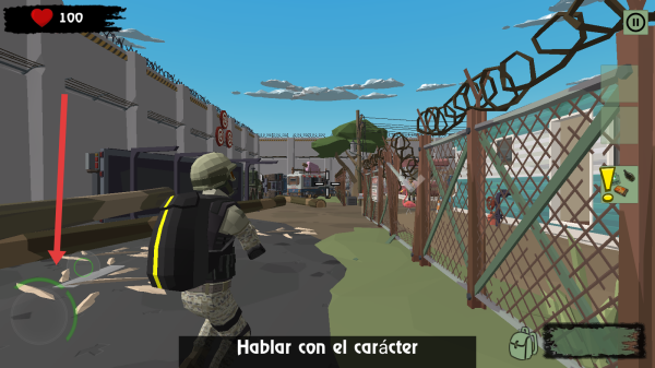 2、利用左下角虚拟摇杆操控角色移动,朝着目标方向行进,准备执行Hablar-con-el-carácter的互动任务。