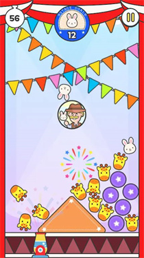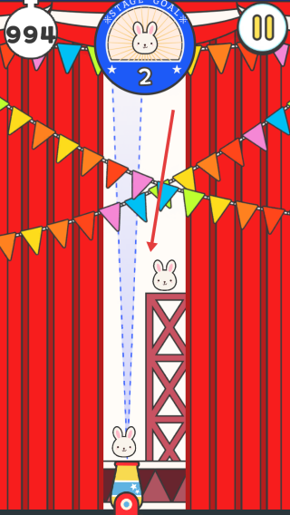 2、观察上方兔子下落轨迹,借助屏幕操作,调整下方道具,让兔子精准落在指定位置,争取PERFECT评价。