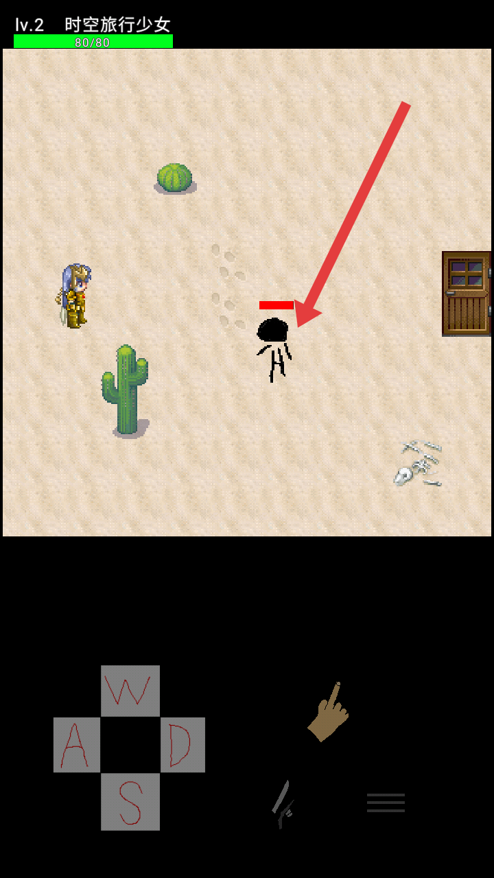 1、通过底部WASD按键操控角色移动,朝向对面的黑色火柴人敌人靠近,利用它的脚印提示预判路径。