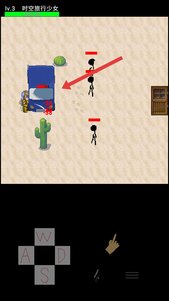 3、遇到蓝色汽车的载具,靠近后借助攻击键输出-38的伤害,高效打击敌人,推进关卡从Lv.2到Lv.3。