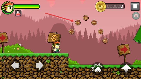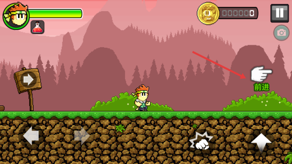 2、操控角色,用左右按键移动,按前进指引探索地图,遇到金币路线优先收集,积累游戏货币。