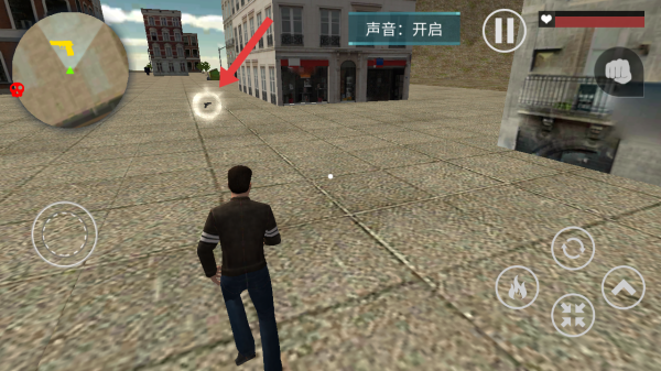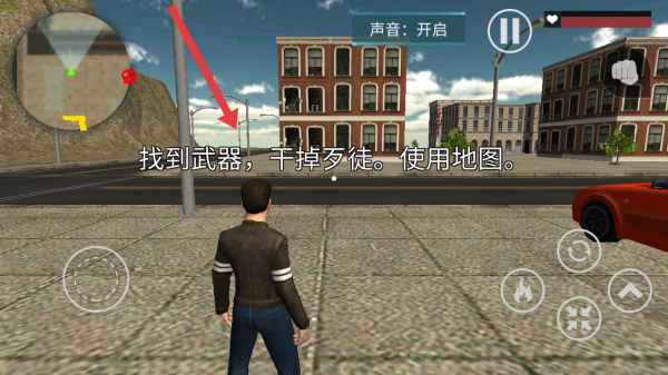 1、观察左上角小地图,黄色武器标识如手枪与红色骷髅歹徒的位置,帮助完成系统发布的目标任务。