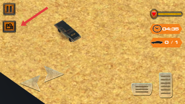 2、需要通过左侧方向箭头转向,右下按键控制加速刹车,点击左上角的摄像机功能,能够切换视角。