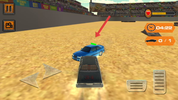 3、操控自己的车辆接近蓝色的车辆后,需要利用撞击来摧毁对手目标,注意自身和对手的血条。