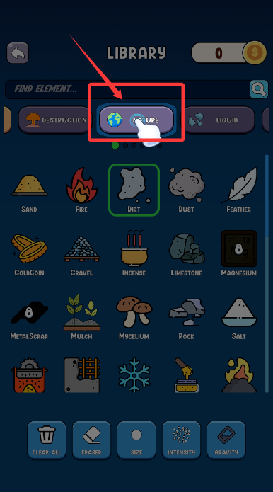 2、选择"自然元素"分类,可以浏览各类基础物质的特性与效果。