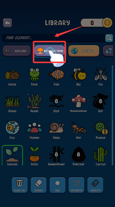 3、自由切换至"破坏元素"专区,可以查看能够改变场景的特殊材料。