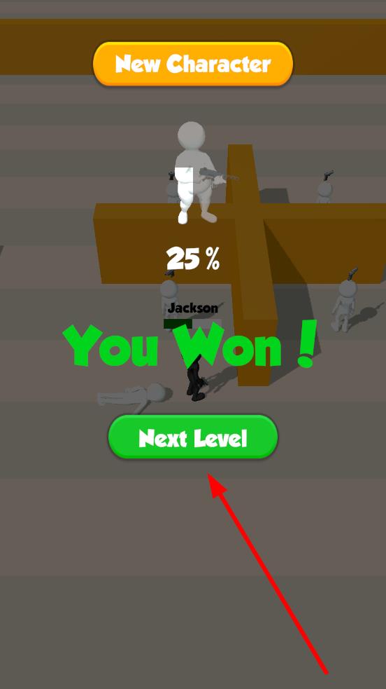 3、当竞技场只剩自身角色时,屏幕弹出You Won提示,点击Next Level进入更复杂关卡,解锁新角色与地图,挑战更高难度。