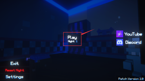 1、点击红框Play Night 1按钮,开始第一晚游戏挑战。
