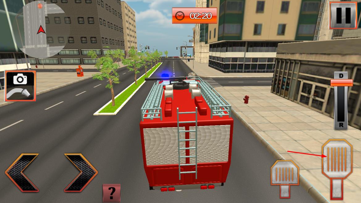 1、进入游戏后接收火警任务,查看火灾地点与火情等级,驾驶消防车按导航路线前往现场,熟悉车辆操控与设备使用基础。
