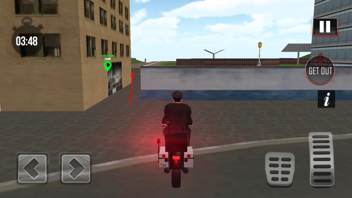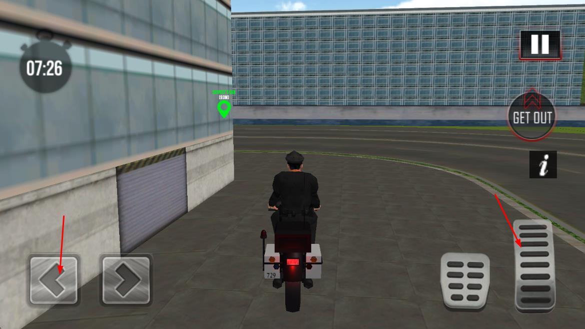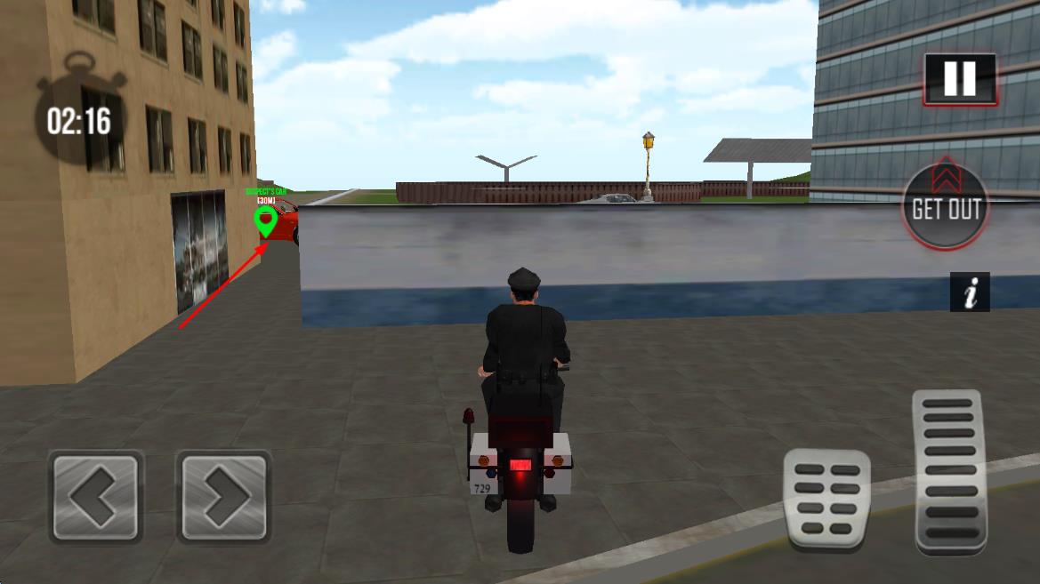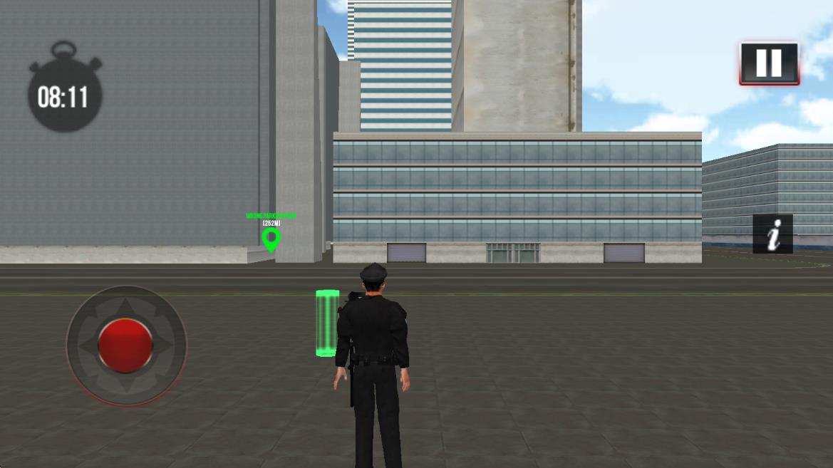 1、进入游戏后选择执勤区域,驾驶警车在道路巡逻,通过虚拟按键控制车辆移动与停车,熟悉基础执法操作流程。