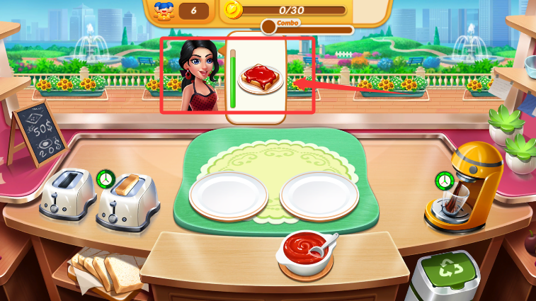 1、核心烹饪环节,按照订单要求准确选取食材,控制火候与烹饪时间,连续成功完成订单可触发连击奖励,获得额外收益。