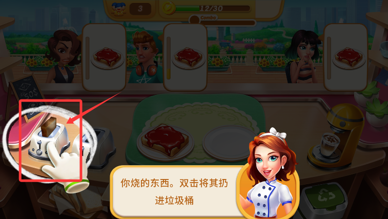 4、遇到烹饪失败时,快速双击烧焦成品进行清理,即刻重新开始制作。