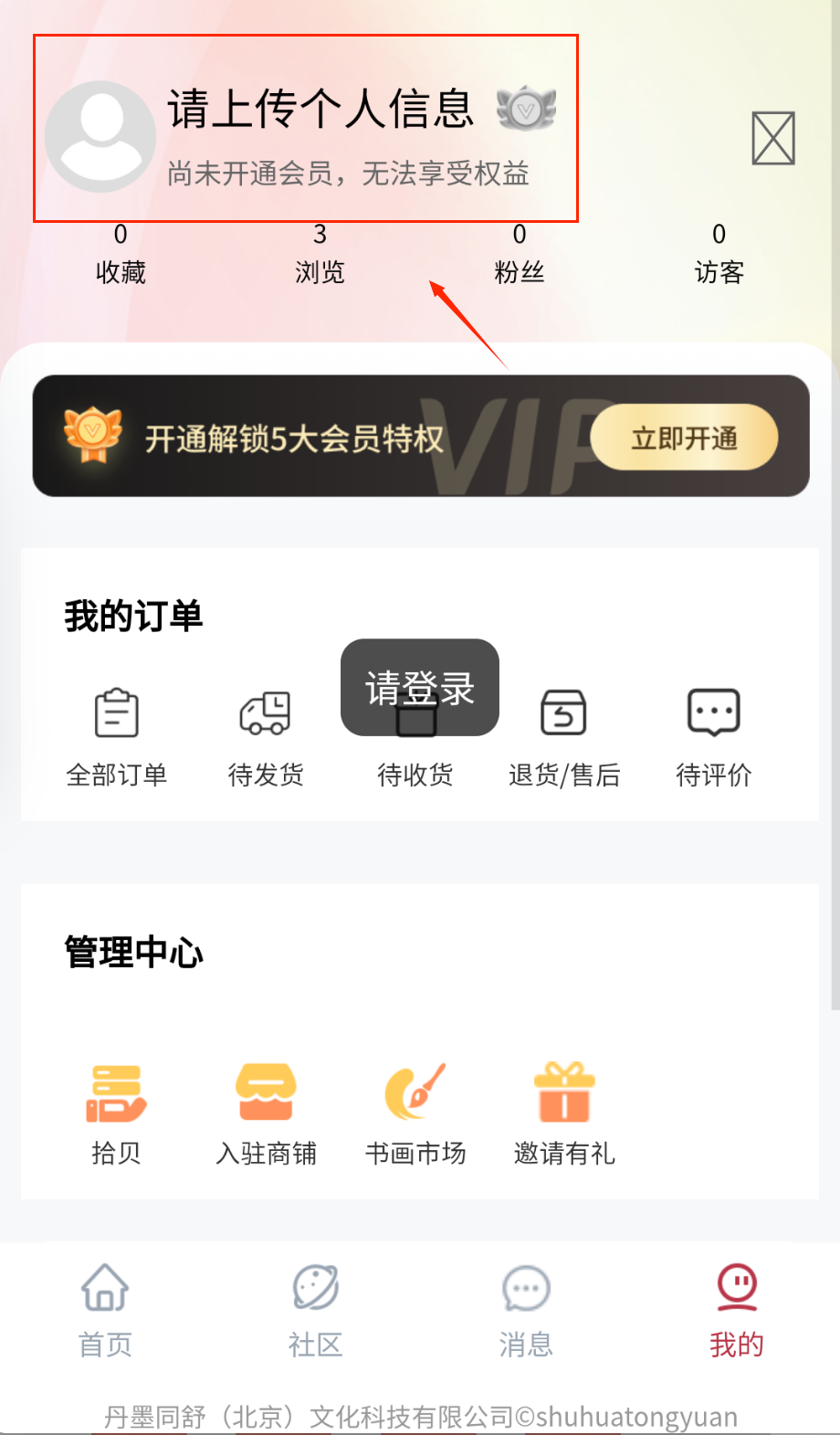 4、社群功能连接同好交流,线上展览策划个人画廊,拍卖预展参与竞拍互动。