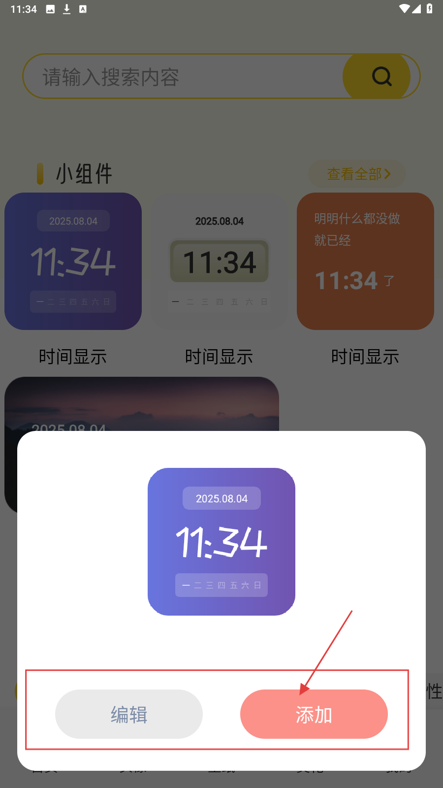 2、点击后,在弹窗中选择【添加】,即可将小组件添加至桌面。