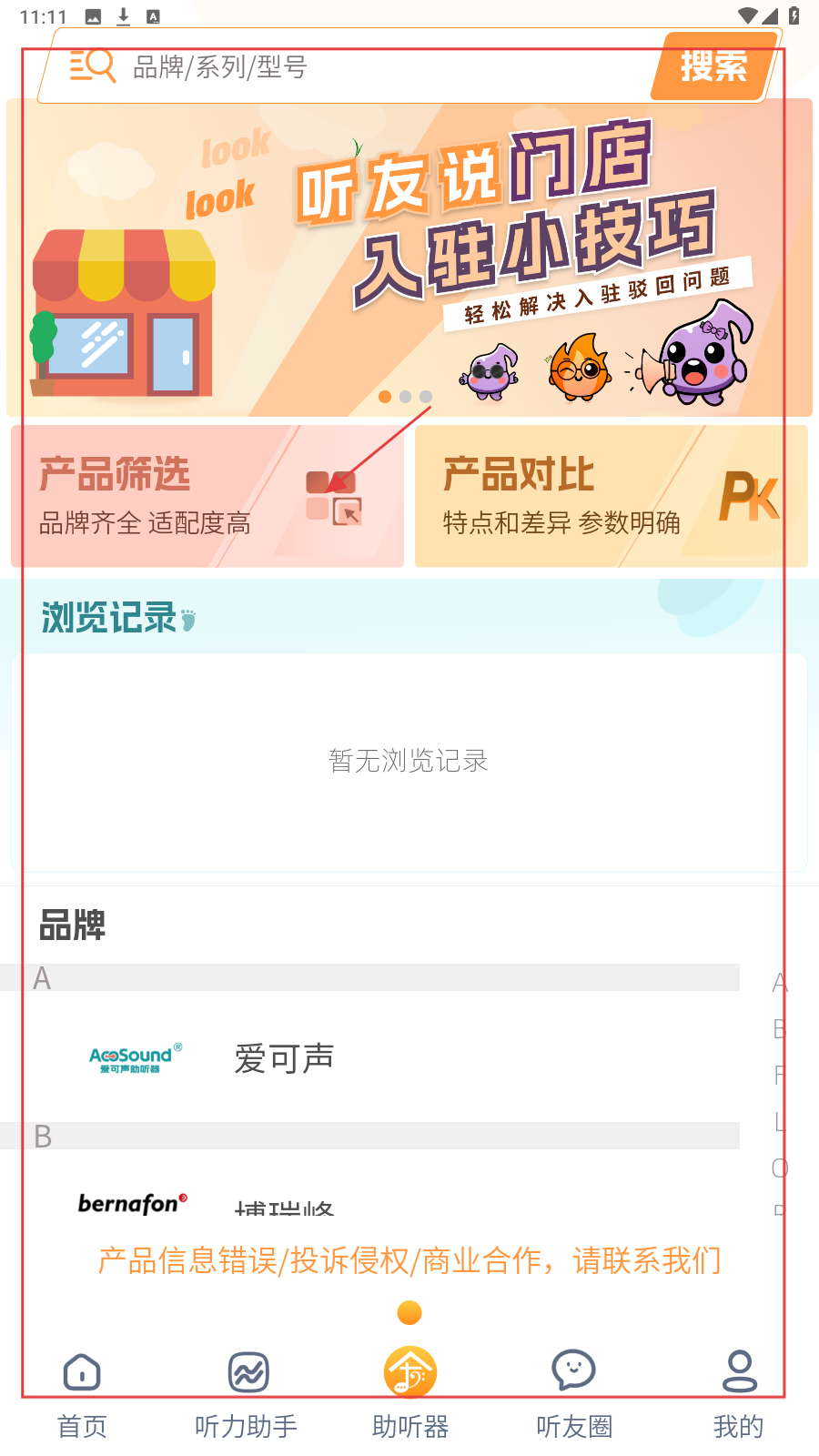 4、切换到【助听器】页面,可以进行产品筛选,选择心仪的产品。