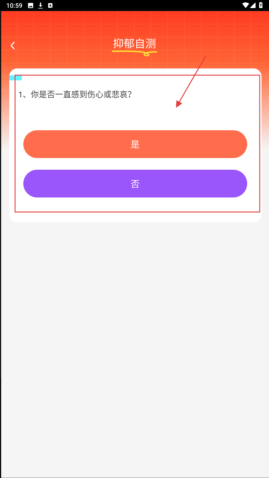 2、在【抑郁自测】页面,按照自身情况如实选择答案。