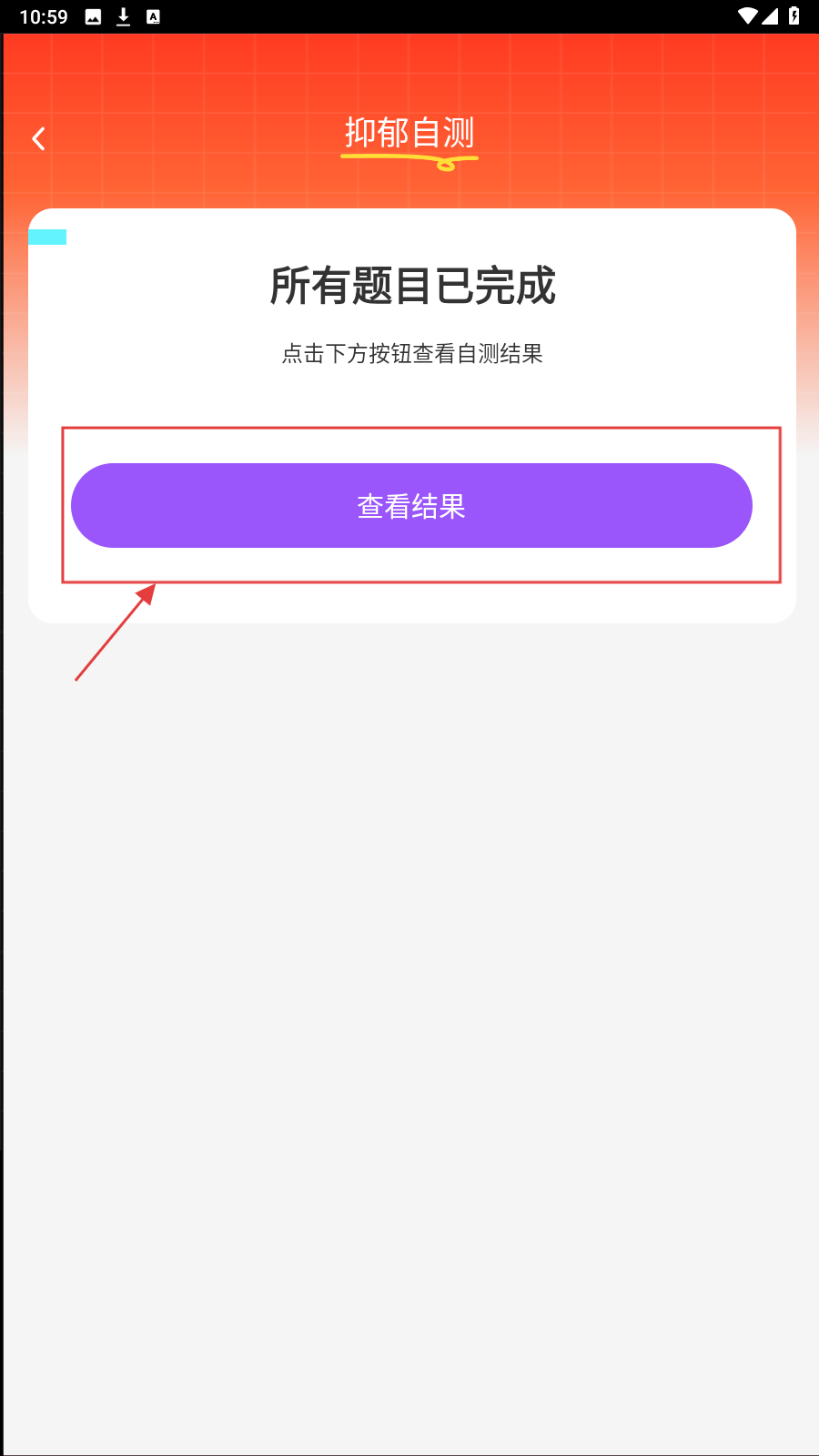 3、所有题目完成后,点击【查看结果】获取抑郁自测结论。