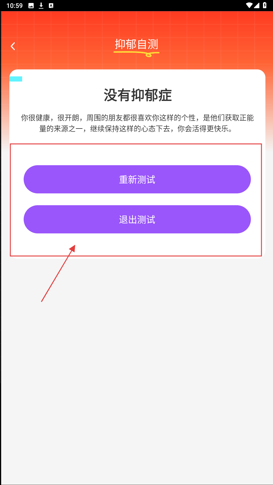 4、查看结论后可以点击【重新测试】进行重新检验,也可以点击【退出测试】结束测试。