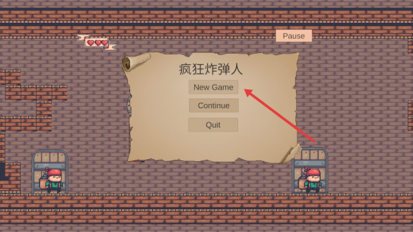 1、在疯狂炸弹人主界面,点击New Game开启全新冒险,操控角色进入像素风地牢场景。