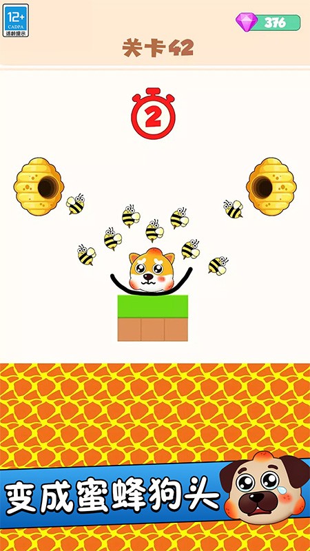 1、进入关卡后先观察蜜蜂的飞行路线和狗头位置,想清楚画线路径再开始,一笔画出阻挡路线保护狗头。